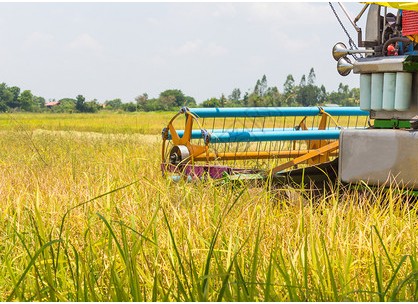 • 拖拉機和收割機在農場收大米